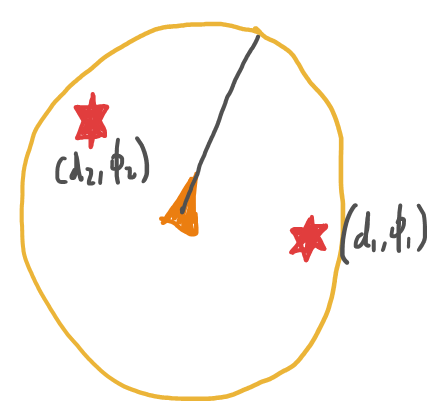 $$\cases{ x_1 = x + d_1 \cos(\phi_1+\phi) \\ y_1 = y + d_1 \sin(\phi_1+\phi) }$$Robótica basada en comportamientos