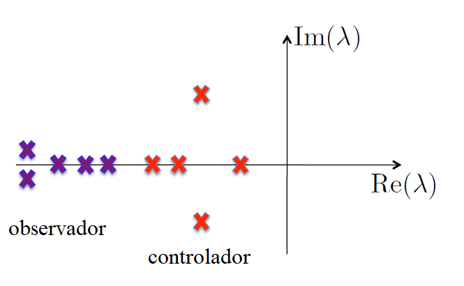 Típicamente el observador debe ser más rápido que el controlador, ya que el controlador no hará nada útil mientras que la estimación del estado no esté cerca del estado.